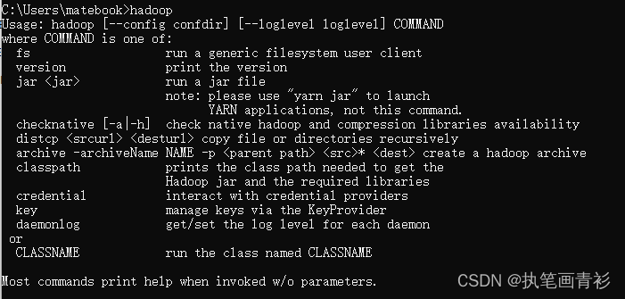 Win+R键打开运行窗口,输入cmd,命令行串口输入hadoop