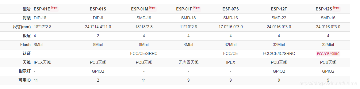 旧型号:https://wiki.ai-thinker.com/_media/esp8266/esp8266_module_list.png