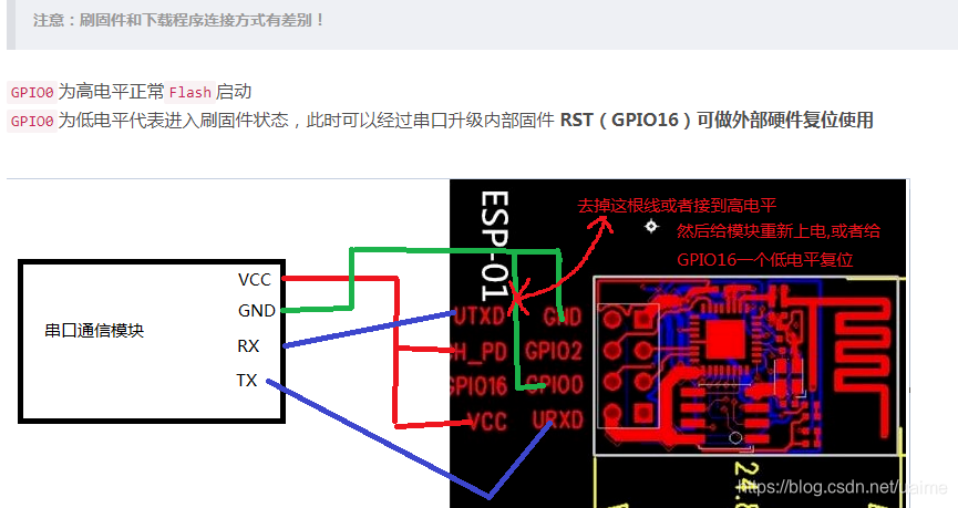 烧录完成后要把GPIO0引脚悬空或者置高才能正常工作.