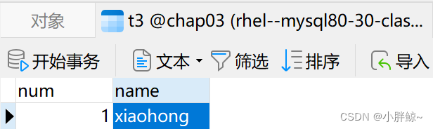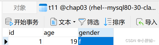 (1)查看数据库chap03下面表t1的表结构,表的字段