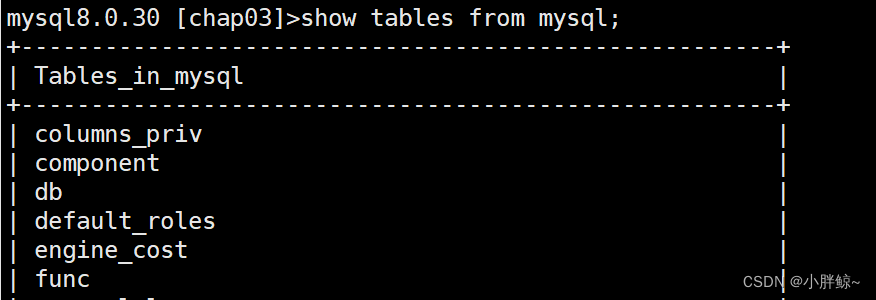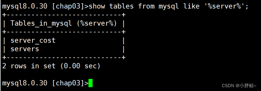 mysql8.0.30 [chap03]>show tables from mysql like '%server%';