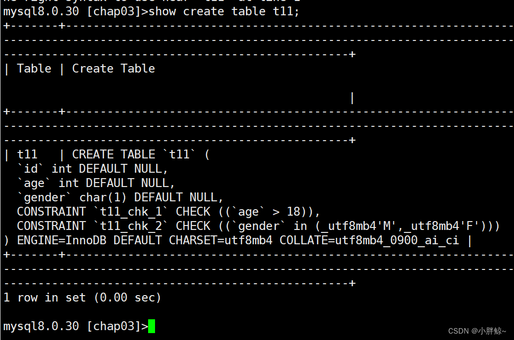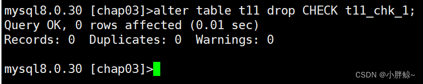 mysql8.0.30 [chap03]>alter table t11 drop CHECK t11_chk_1;