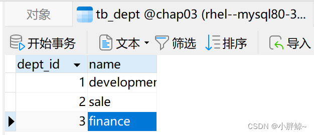 (4)给表tb_employee输入记录时,外键key (department_id)必须参考表tb_dept的主键dept_id ,不能随意输入