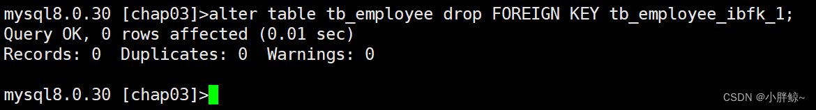 mysql8.0.30 [chap03]>alter table tb_employee drop FOREIGN KEY tb_employee_ibfk_1;