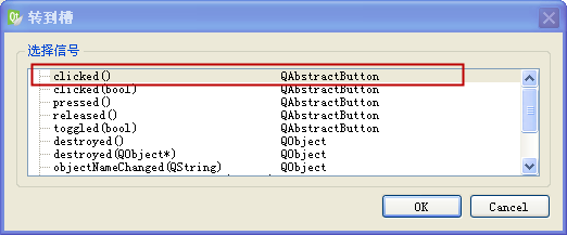 在图形界面右击两个按钮,在右键菜单选择“转到槽...”,然后为按钮的 clicked() 信号添加槽函数: