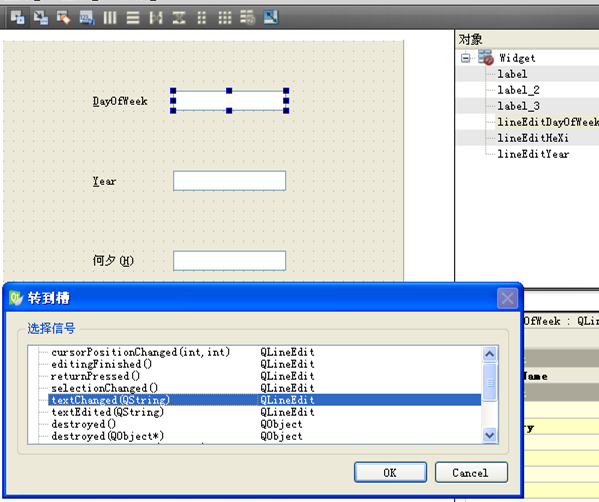 接着将 cpDayOfWeek 设置给 ui->lineEditDayOfWeek。
