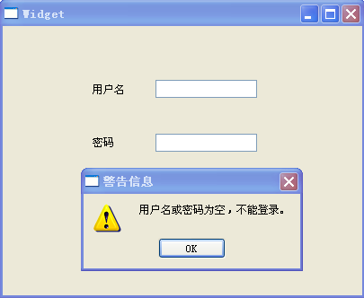 界面里有两个标签控件、两个单行编辑控件、两个按压按钮。标签控件的文本如图上显示的:“用户名”、“密码”,标签高度调整为 20,这样与单行编辑控件的高度一样,方便与单行编辑控件对齐。