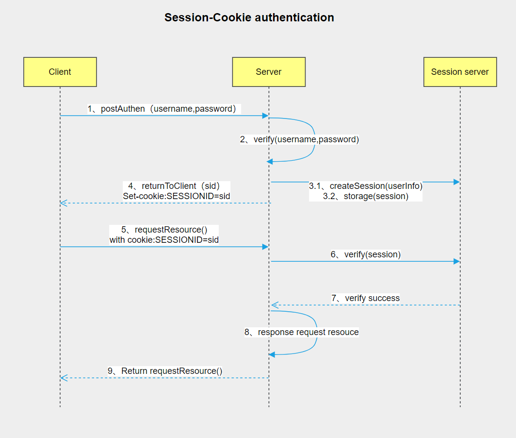 Session-Cookie认证是利用服务端的Session(会话)和浏览器(客户端)的 Cookie 来实现的前后端通信认证模式。