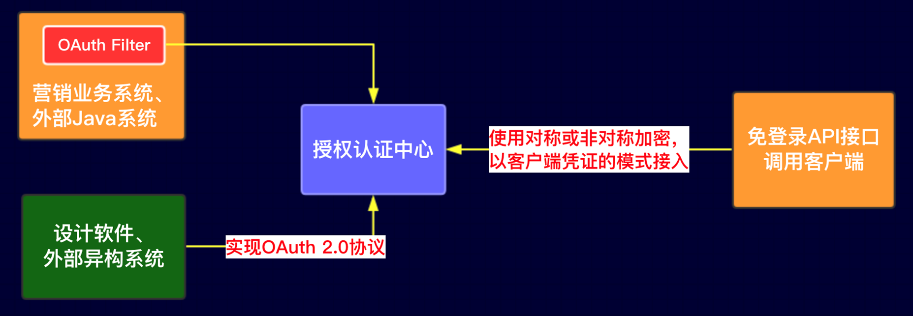 4、营销体系的各个系统相对比较新,采用Oauth2协议认证,实现营销体系内部统一认证。