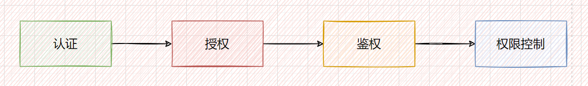 看到这里,我们应该明白了认证、授权、鉴权和权限控制这四个环节是一个前后依次发生、上下游的关系,如下图所示: