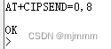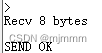 7. 发送数据 AT+CIPSEND=0,8 //发送8个字节在连接0通道上