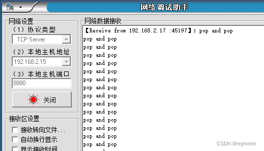 此时可以发送信息(不用加回车!)并在网络助手中收到!