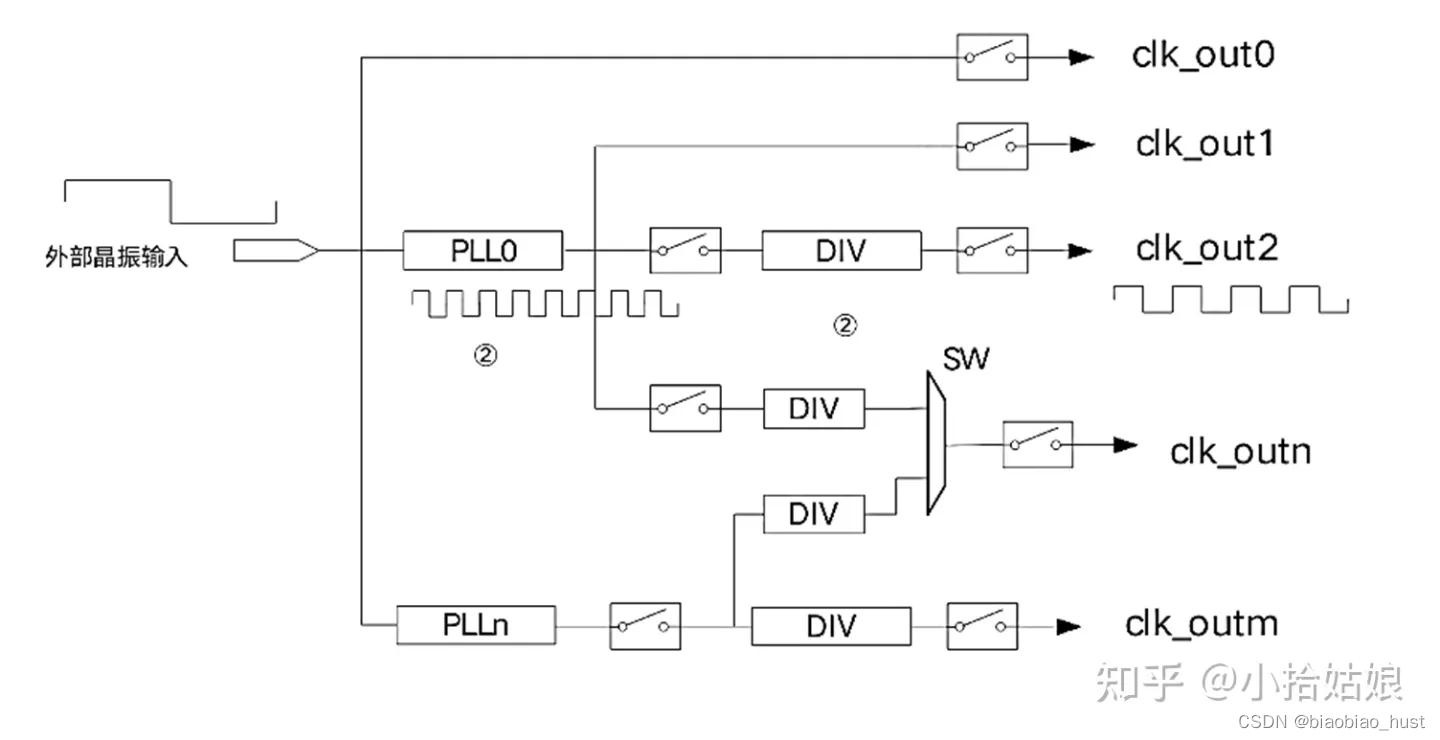 CRG(Clock and Reset Generation,时钟复位生成模块) 模块扮演着关键角色。这个模块负责为整个系统提供稳定可靠的时钟信号,同时在系统上电或出现故障时生成复位信号,确保各个模块按预期运行。简而言之,CRG模块就像是SoC系统的心脏,提供着整个系统需要的时钟和复位信号。