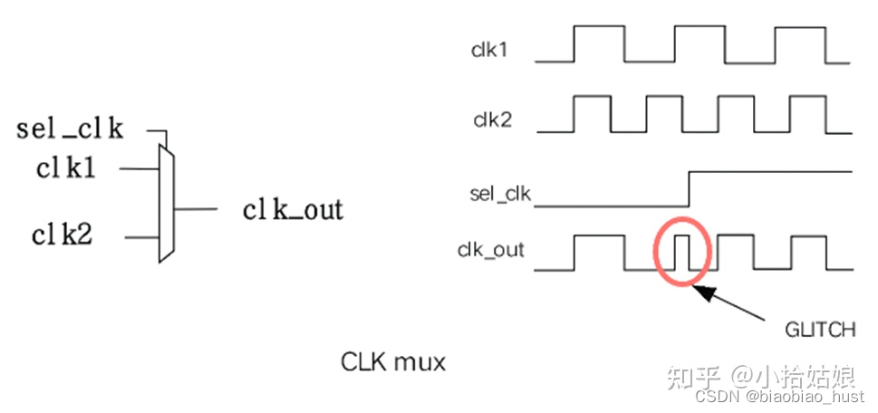 时钟mux:用于静态切换,动态切换会出现glitch。