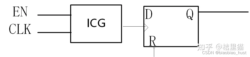 那么实际情况下怎么插入的?这个需要看综合策略。如果Q就1两个bit,那其实使用mux更省一些。如果Q比较宽,例如Q为32bit的话插入ICG就收益非常明显。既节省了功耗,1个ICG肯定是小于32个mux。