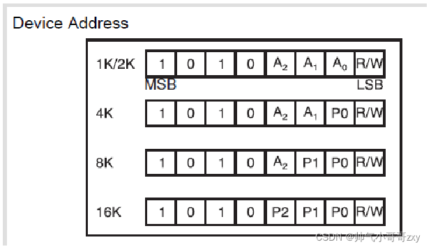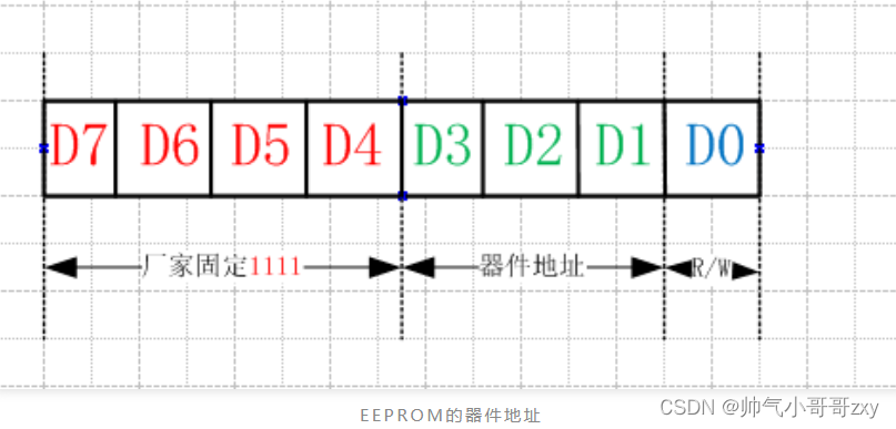 3.器件地址的D7-D4一般都是被厂家固定了为1111,余下的D3,D2和D1连接到芯片的A2,A1和A0决定; 4.D0为0x00表示写,D0为0x01表示读。大家看例程都是些0xA0和0xA1就是这个原因。