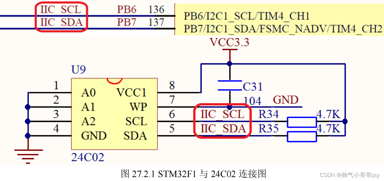 目前大部分 MCU 都带有 IIC 总线接口,STM32 也不例外。但是这里我们不使用 STM32 的硬件 IIC 来读写 24C02,而是通过软件模拟。