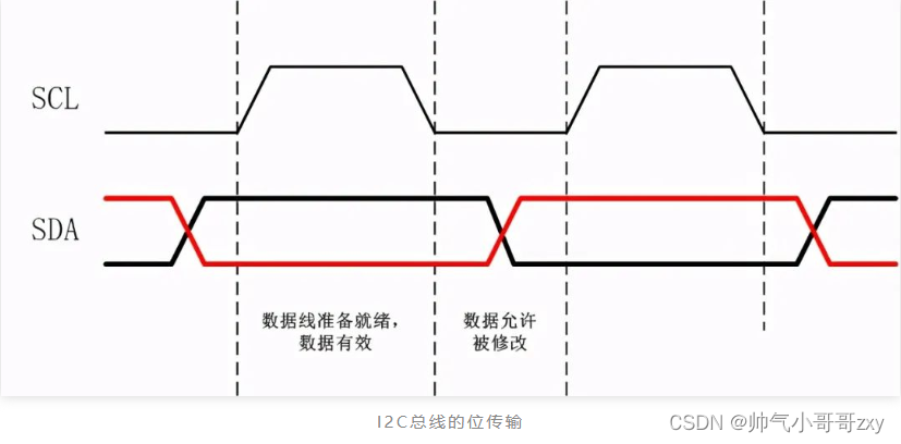 注意:数据在SCL的上升沿到来之前就需准备好。并在在下降沿到来之前必须稳定。