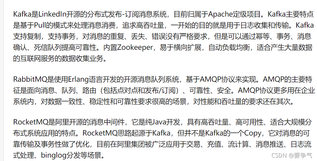 Kafka、RabbitMQ、RocketMQ 之间的区别是什么 ?