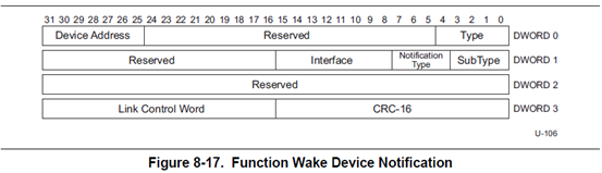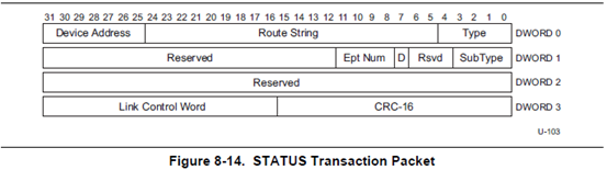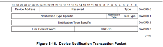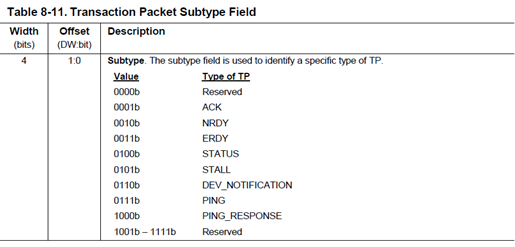 ACK(Deferred) – 如果接收到一个Deferred (DF)标志被设置的ACK TP,则设备应该将管道转换进入Deferred Prime Pipe状态。当在等待被指派初始Endpoint Buffers的时候,链路转换进入了U1或U2状态,会收到这个包。
