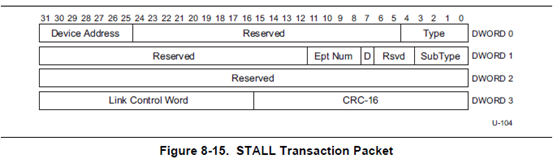 • 如果遇到端点内部错误,返回一个STALL事务包(Transaction Packet)