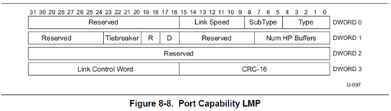 端口能力LMP(Port Capability LMP)描述每个端口的链路能力,且在成功完成训练和链路初始化之后,链路伙伴双方都要发送。在端口从Polling进入U0之后,端口应该发送在链路初始化(参见第7.2.4.1.1节)完成之后的tPortConfiguration时间内发送Port Capability LMP。注意端口可能不总是从Polling直接转换进入U0,而是在进入U0之前可能通过其他中间状态(例如,Recovery或Hot Reset)转换。不论在Polling和进入U0之间经过了什么状态,设备都应该在进入U0时立即发送一个Port Capability LMP【已勘误】。