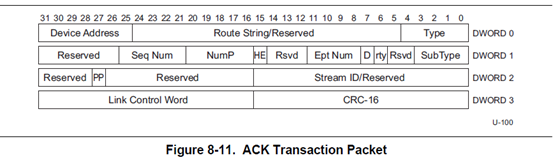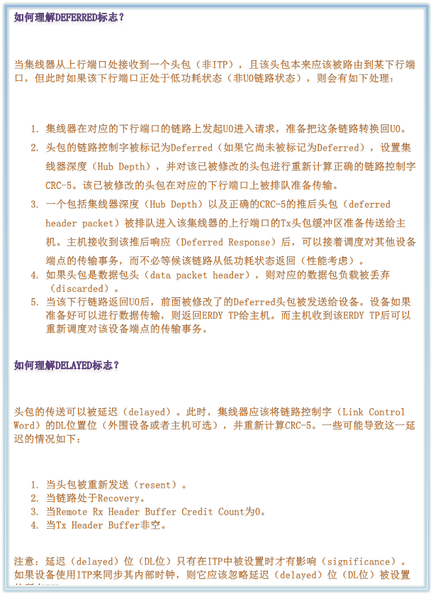 ACK(Deferred) – 如果接收到Deferred (DF)标志被设置的ACK TP,则设备应该将管道转换进入Deferred Prime Pipe状态。当链路已经转换进入U1或U2状态,且主机已经尝试了一个HIMD时,会接收到这个包。