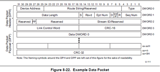 • 数据包【Data Packets (DP)】 在所有的直接连接主机和设备的链路上传送。数据包有两部分:数据包头【Data Packet Header (DPH)】以及数据包负载【Data Packet Payload (DPP)】。