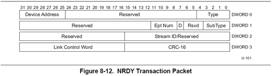 NRDY(Prime) – 当进入Prime Pipe状态时, 设备应该生成一个Stream ID设为Prime的NRDY TP,并转换到Idle状态。