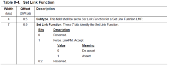 一旦接收到一个Force_LinkPM_Accept bit有效的(asserted)LMP包,端口应该接受所有的LGO_U1 和 LGO_U2链路命令,直到端口接收到Force_LinkPM_Accept无效的(de-asserted)LMP包。