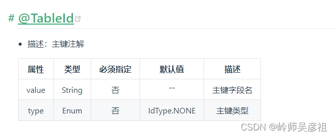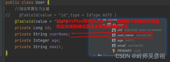 MybatisPlus默认把实体中名为id的字段,看做成主键。而实际开发中,存在主机字段名不为id的情况,所以需要我们手动指定。