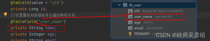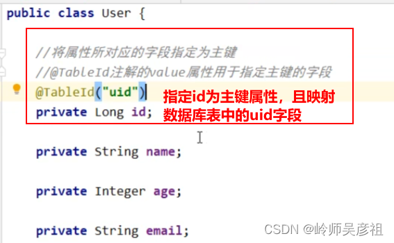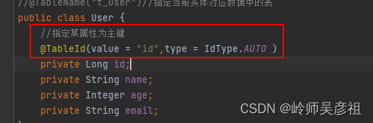 当实体类属性和数据主键字段名字不对应时,可以通过@TableId的value属性指定映射到数据库的某个字段