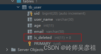 这个特定属性对应的数据字段要设置为int类型,且设置默认值为0(代表未删除)