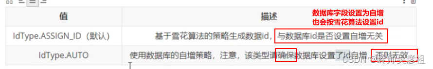 Mybatis主键的生成策略默认采用雪花算法,当想要改成自增生成id时,需两步设置: