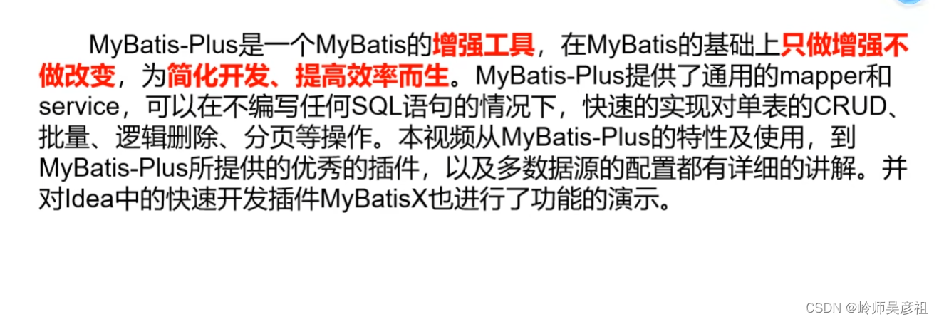 简介 | MyBatis-Plushttps://www.mybatis-plus.com/guide/#%E7%89%B9%E6%80%A7
