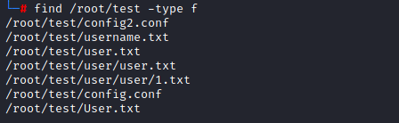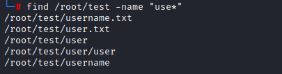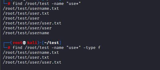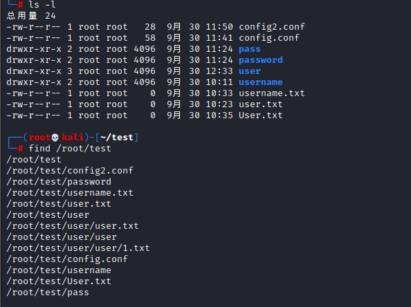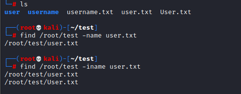- 指定在/root/test目录下搜索user文件夹及user.txt文件