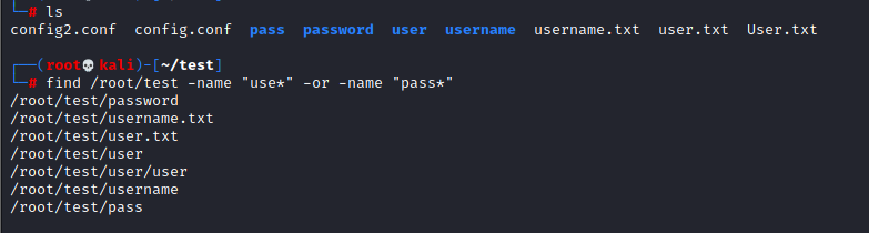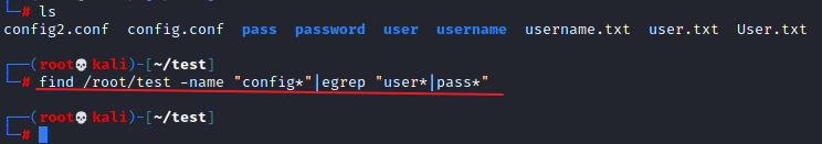 find /root/test -name "config*"|egrep "user*|pass*"