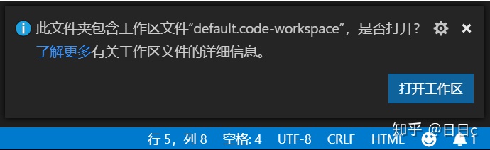 打开某一文件夹后,若文件夹中含有工作区文件,会自动弹出以下提示