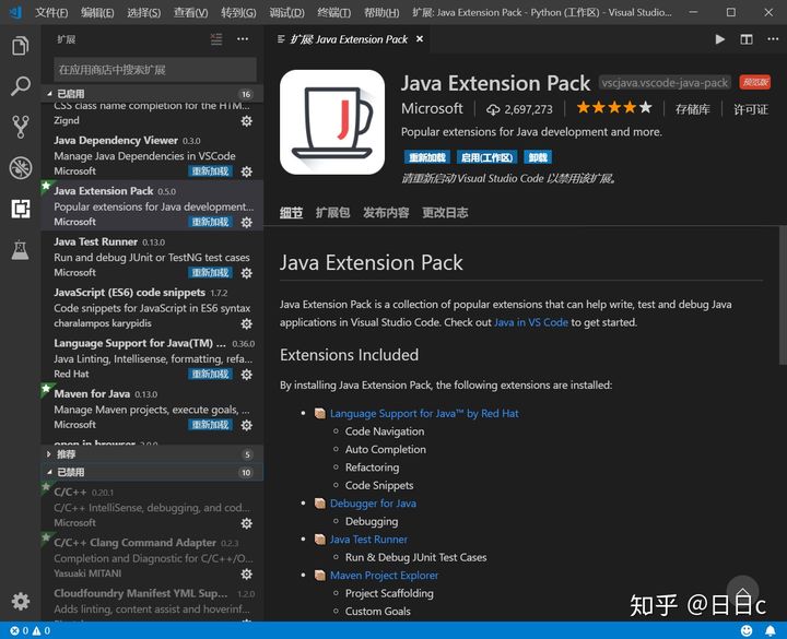 这里仅是用Java和Python举个栗子,可能有人会说不会用VSCode写个Java,作者本人也不经常用VSCode写Java项目,用它写前端更多些。