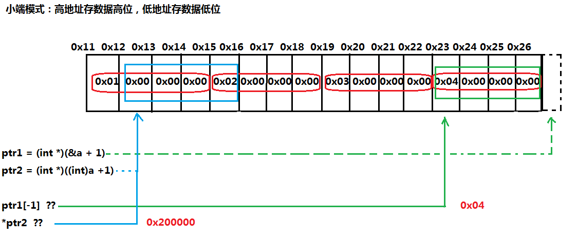所以小端模式时:ptr1[-1] = 0x04
