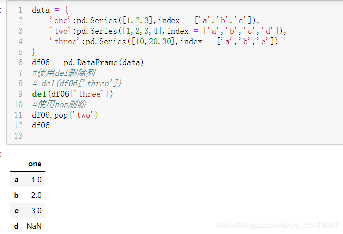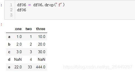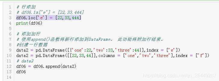df06.loc['e'] = [22,33,444]或者 df06.append(data2)