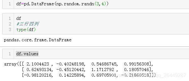 直接看代码看程序吧里面有点疑问,打印了一下df的类型是DataFrame类型,df.values可以将DataFrame(二维列表)转成矩阵用了那么久不知道DataFrame是什么,下面来详细介绍一下Pandas的数据类型Pandas基于两种数据类型: series 与 dataframe 。Series:一种类似于一维数组的对象,是由一...