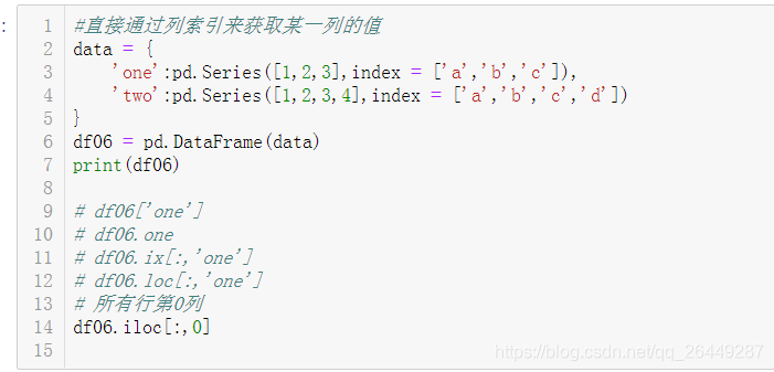 行选择(选择某一行,或者几行的数据)df.iloc()