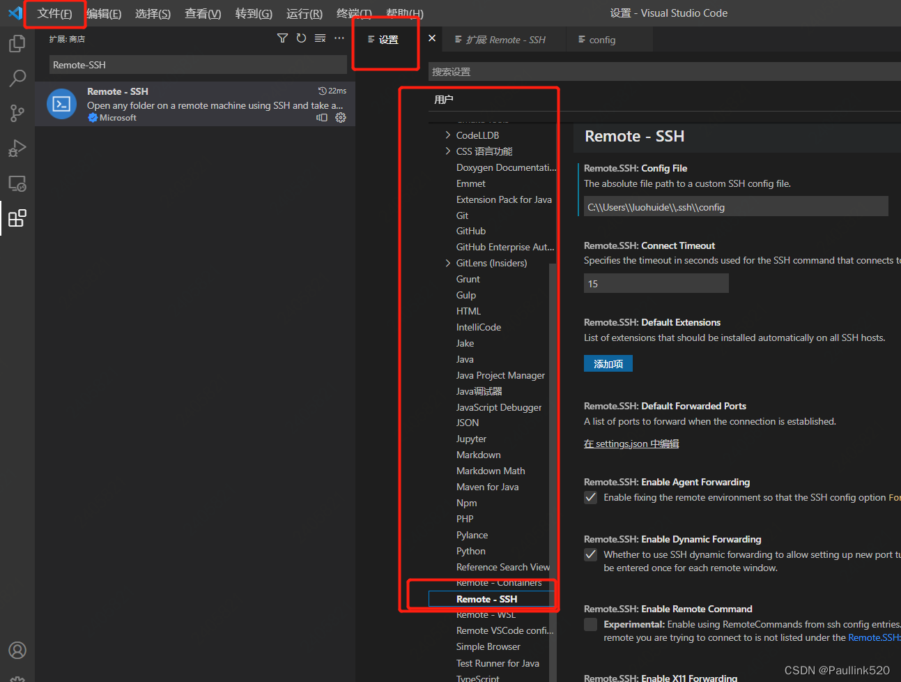 【1】补充SSH加载配置路径:Remote.SSH: Config File