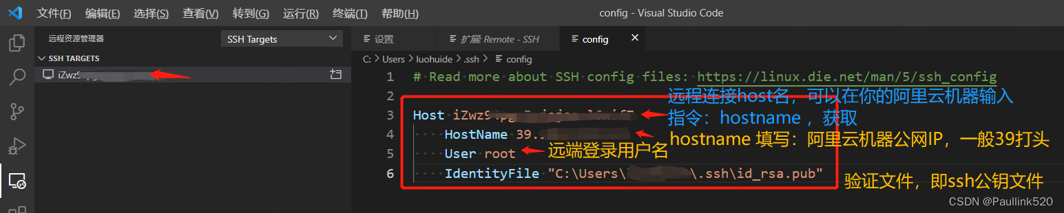 step3:在vscode打开此config文件,进行配置阿里云机器配置后保存: