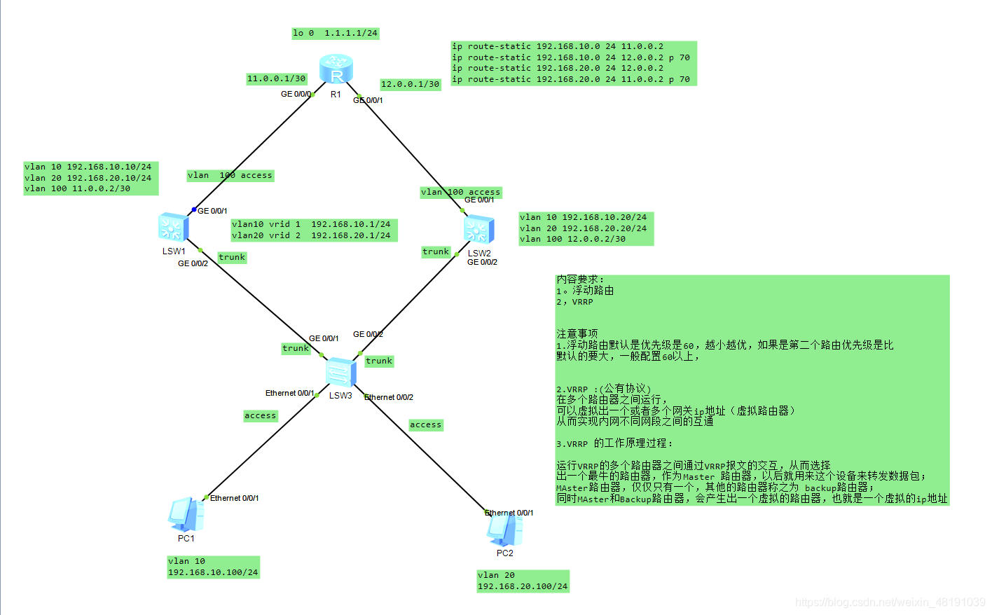 [lsw1-Vlanif10]vrrp vrid 1 virtual-ip 192.168.10.1  配置虚拟的ip地址
