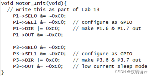 Motor_Init();//初始化电机端,将P1.6,P1.7,P3.6, P3.7为输出端口,用于驱动电机