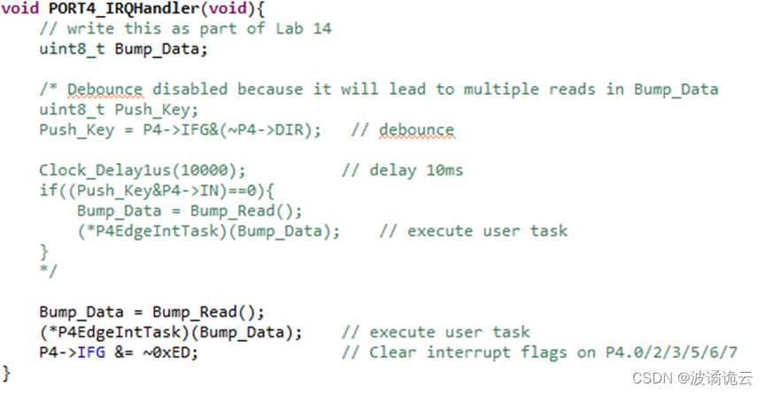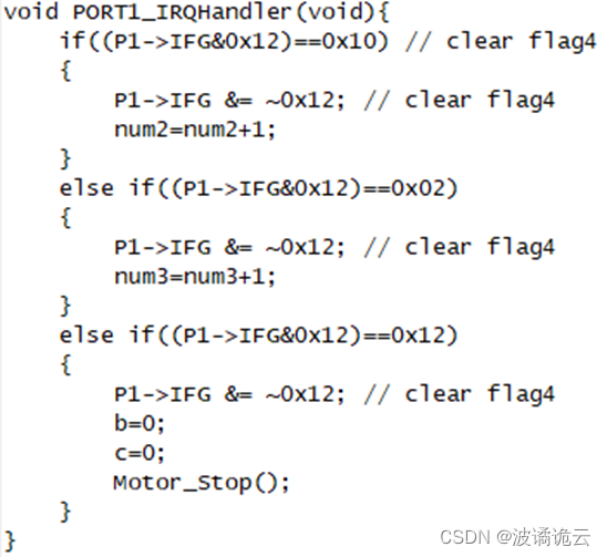 中断服务函数,在中断服务函数中对按键按下的次数进行累加,改变控制电机转动状态的寄存器变量,这样可以很好地改变电机的状态,不需要多次触发中断,影响小车的运行