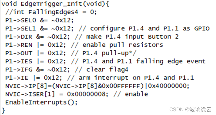 EdgeTrigger_Init();//初始化中断,将P1.1和P1.4配置为中断