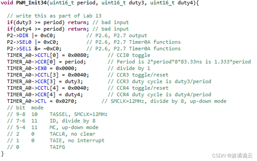 PWM_Init34(uint16_t period,uint16_t duty3,uint16_t duty4)//PWM初始化, 实现小车的电机驱动控制